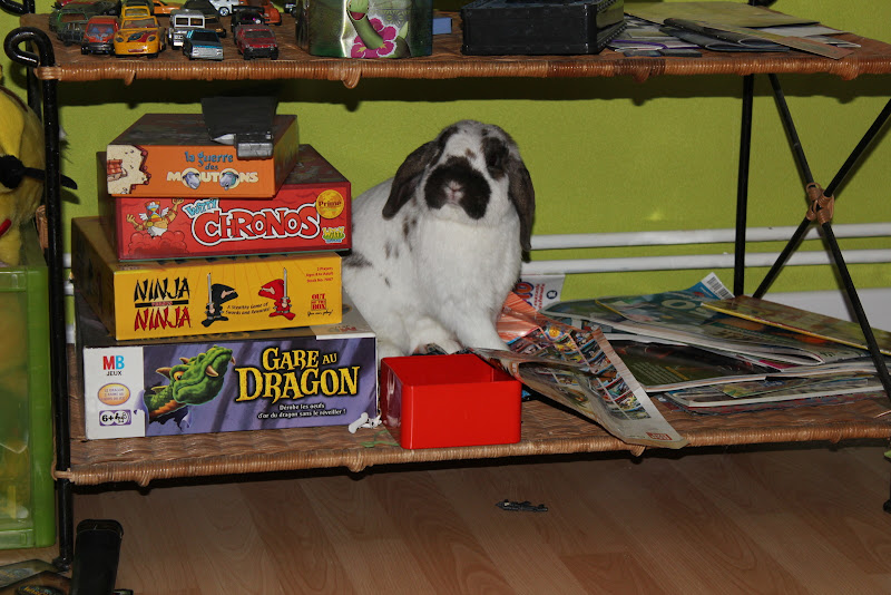 Chambre d'enfant, avec bien entendu le bordel qui va avec, et les lapins ADORENT le boxon :)